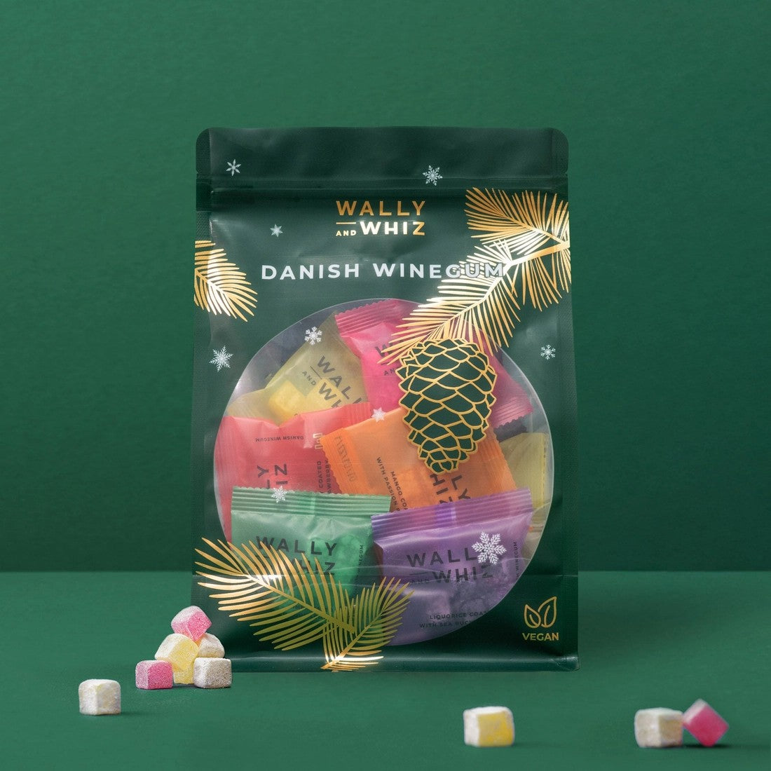 En julepose fylt med 24 små poser med de uimotståelige små vingummikubene fra Wally and Whiz.