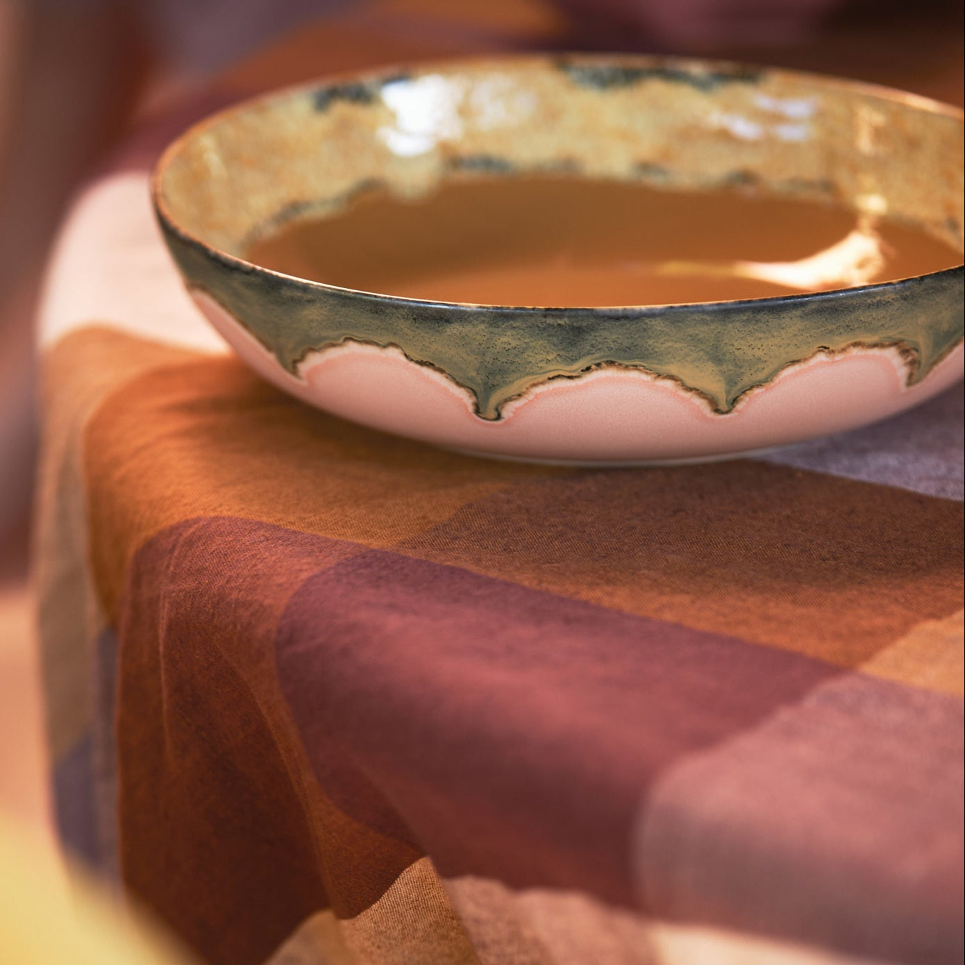 Stor bolle i keramikk med håndglasert finish med retrotoner. Forskjeller i glasur kan forekomme.