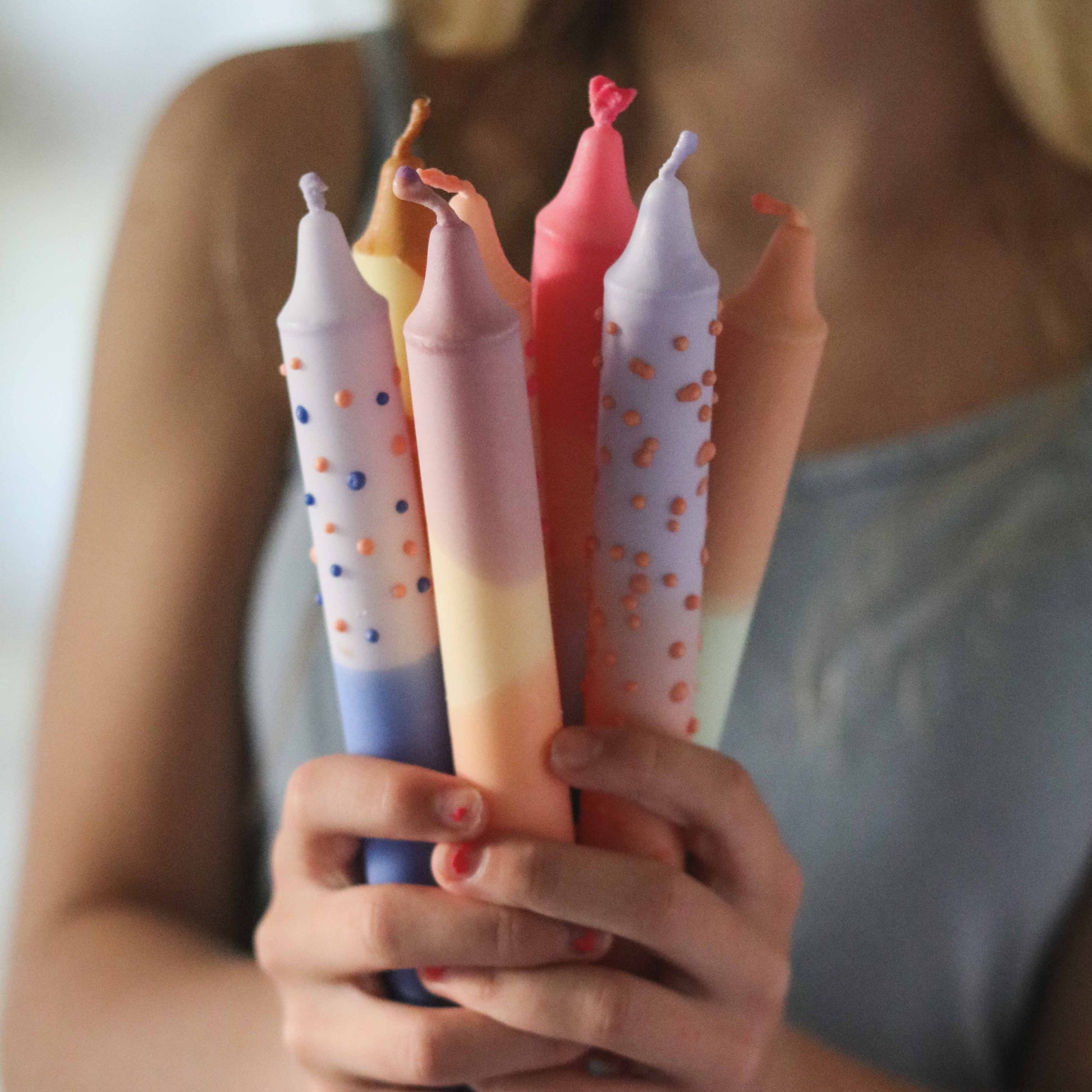 Fargene du kan velge i er fortrinnsvis fargerike og i pastell, men vil variere noe etter sesong. Lys og voks er av 100% stearin.