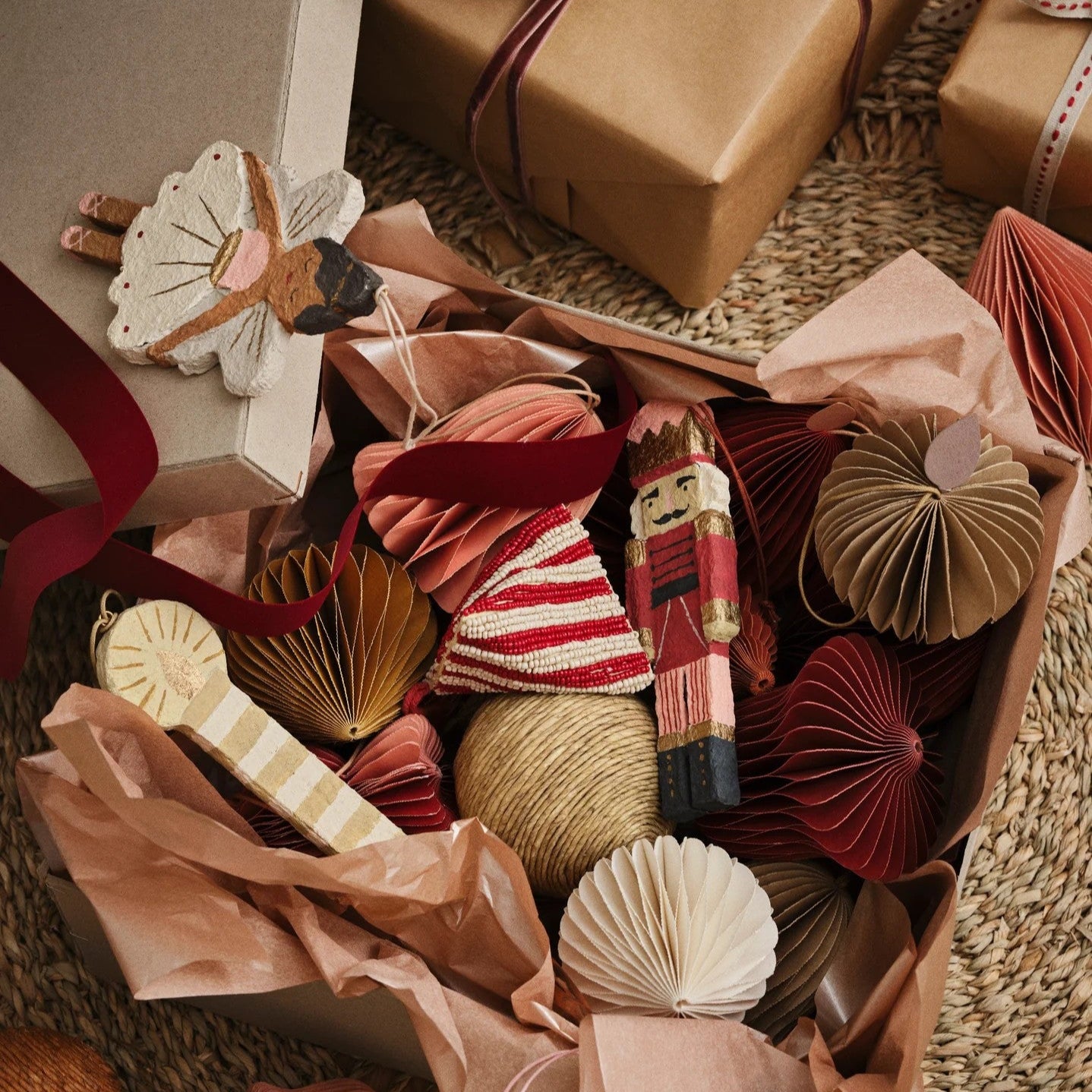 Juletrepynt i resirkulert bomull med snor til å henge opp med.