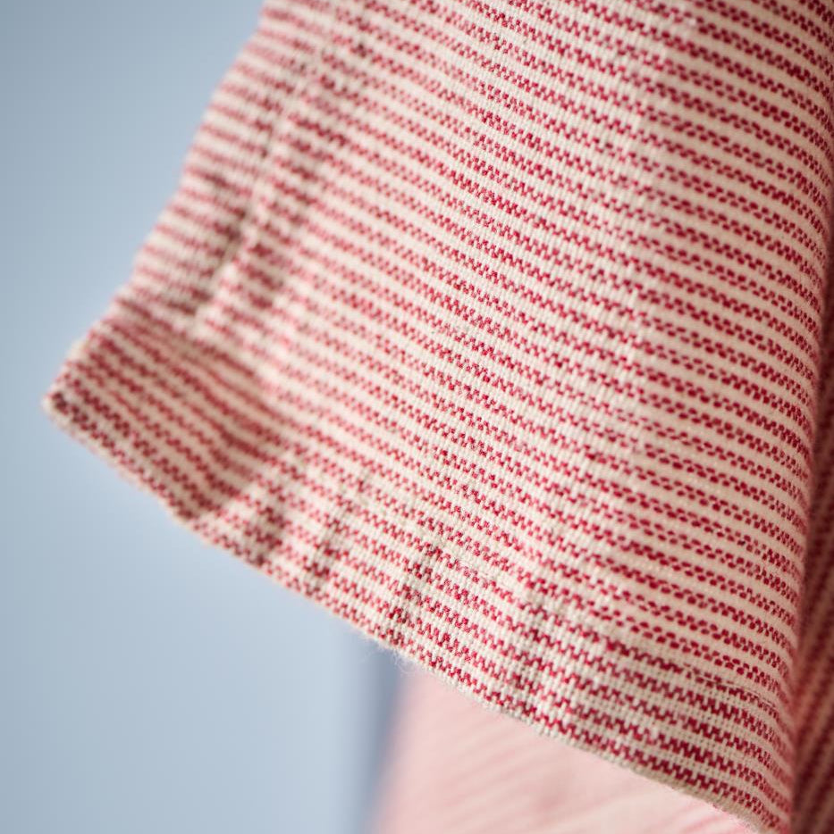 Kjøkkenhåndkle i 100% bomull med tynne, røde striper.