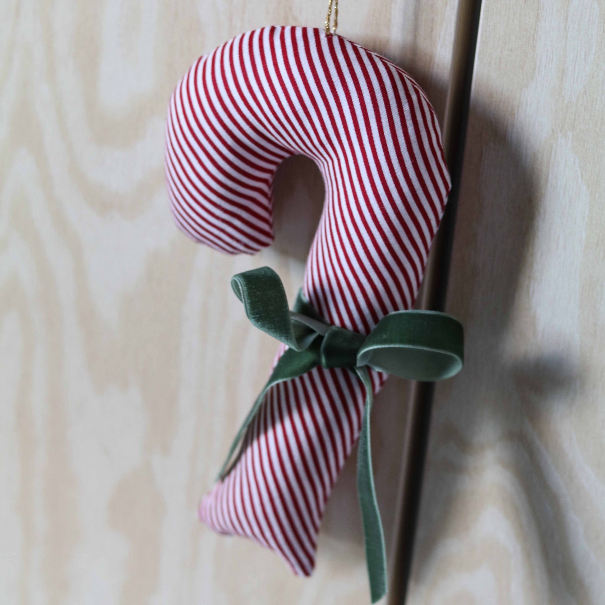 Fin til å henge på en dør eller et håndtak for eksempel. Stoff i bomull og fyll i polyester. Hempe til å henge den opp i.